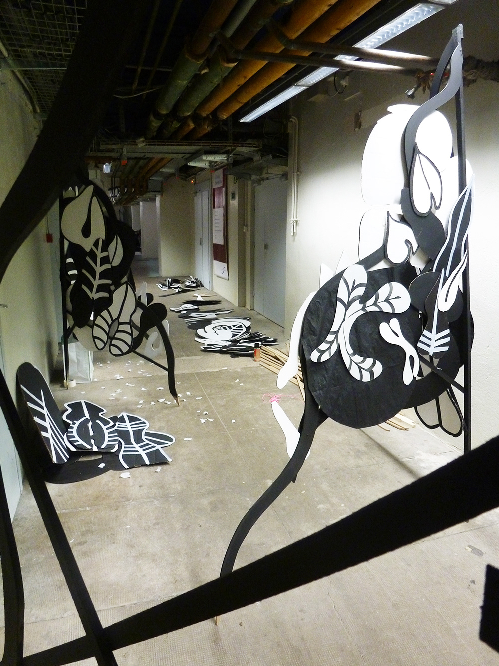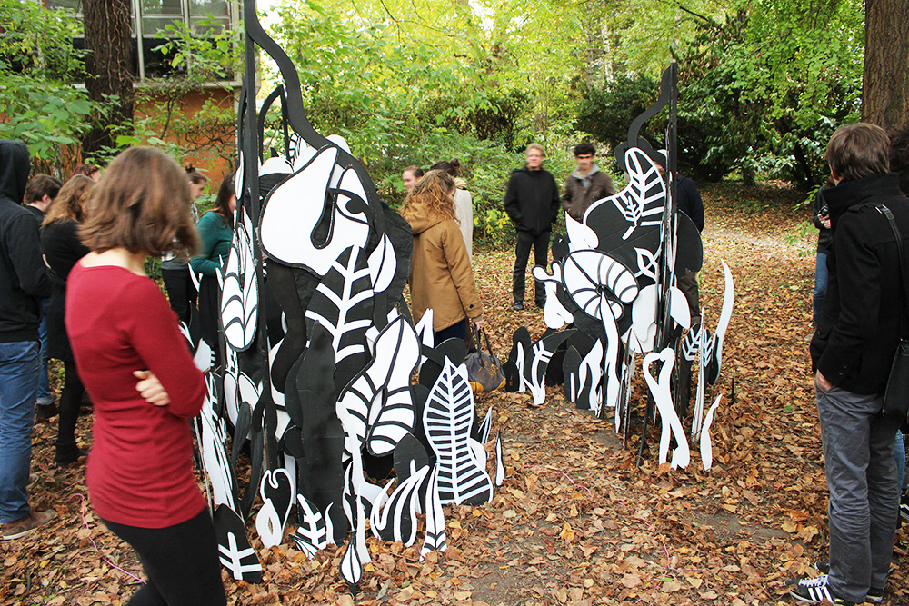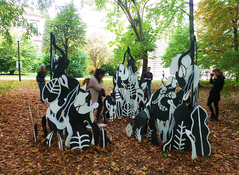 I decided to represent Gainsbourg's dream like a wood. As we walk through the installation, we can perceive feminine shapes among the stylised leaves and branches. Like an intense memory, the woman's body is close and yet inaccessible, nowhere and everywhere. She is a trick, a trap, an illusion.