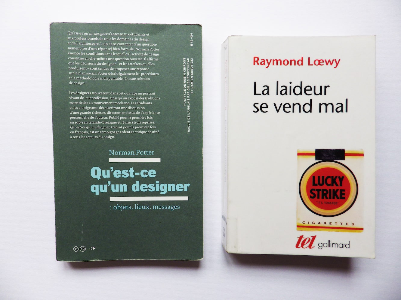 La première chose qu’on peut remarquer au sujet des livres de ces deux designers, c’est que, bien qu’ils aient tous deux pour objectif de parler de design, ils le font chacun sur un mode qui leur correspond. Lœwy superpose cet objectif à sa biographie. Son écriture est fortement romancée, il se présente à nous sous son meilleur jour. Il donne différentes leçons sur le design, qui sont des règles bien arrêtées. Potter, lui, livre très peu d’éléments personnels de son histoire et, plutôt que d’énumérer des règles, il explore les différents aspects du design. Il est également intéressant de comparer les titres. Celui de Lœwy, La laideur se vend mal, est affirmatif et focalise le sujet sur le produit et son esthétique. Celui de Potter, Qu’est-ce qu’un designer : Objets, Lieux, Messages, est interrogatif et se focalise sur la personne du designer. Le titre aurait pu se contenter de « Qu’est-ce que le design », mais Potter décide de se centrer sur l’humain car, pour lui, il n’y a pas un design, mais des designers qui ont des activités très diverses. Par exemple, dans le cas du design produit : « Le spectre professionnel s’étendrait de la céramique d’art et du design tex- tile d’un côté, à la conception technique et à la programmation informatique de l’autre. » Il a une vision très large de ce que peut recouvrir le design.