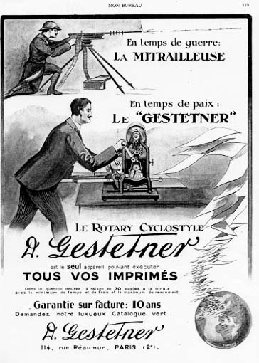 On ignore si Lœwy a imaginé lui-même la publicité du duplicateur, mais on peut constater que l’esprit guerrier de la première affiche a laissé place à une image plus simple et pacifique. Le message publicitaire est recentré sur l’essentiel.
