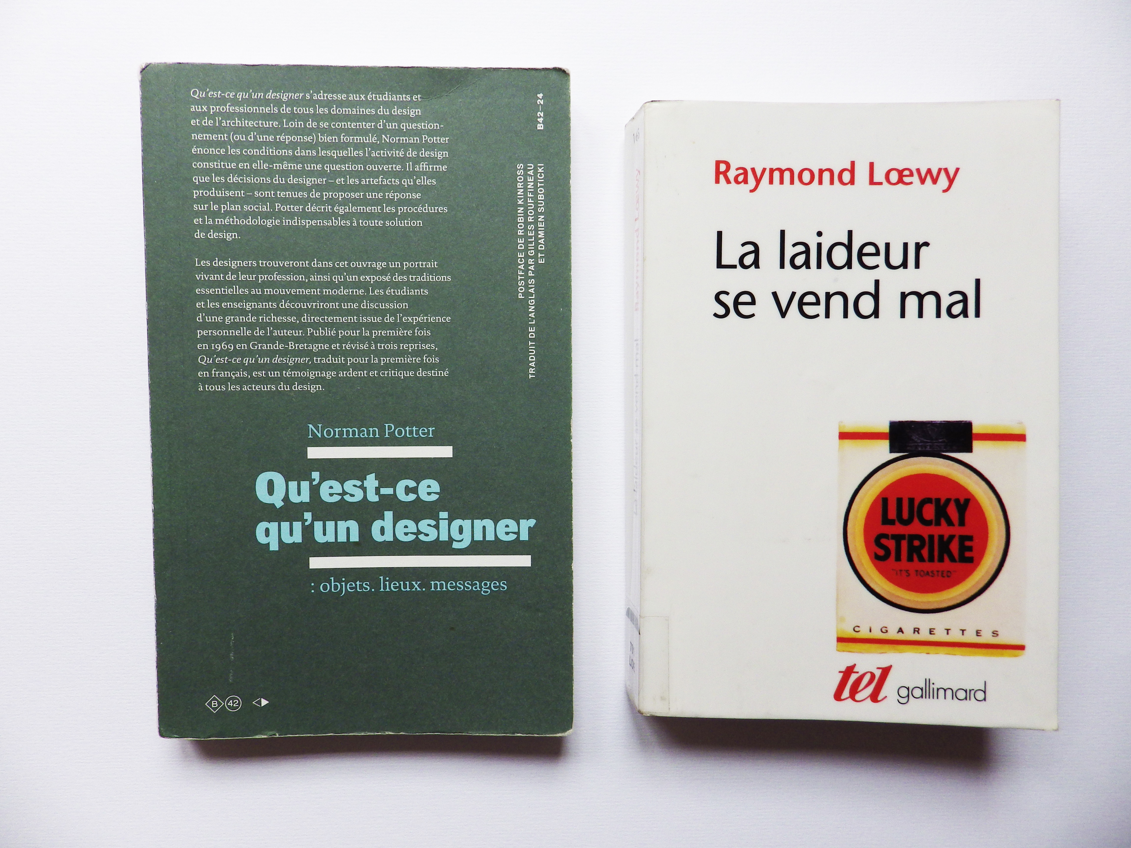 Plusieurs raisons m’ont amenée à m'intéresser à ces designers plutôt que d’autres. La première est qu’ils sont fortement opposés dans leurs convictions politiques. La deuxième est qu’ils ont tous les deux écrit des livres dans l’objectif de partager leur vision du design. Ces livres (La laideur se vend mal pour Lœwy [1963] et Qu’est-ce qu’un designer : objets, lieux, messages pour Potter [1969]) sont les principaux matériaux de la mise en confrontation que je propose. La troisième raison est que tous les deux sont peu connus. Si Raymond Lœwy bénéficie d’une importante notoriété, ce qu’on connaît, c’est avant tout une façade mise en scène par lui-même.