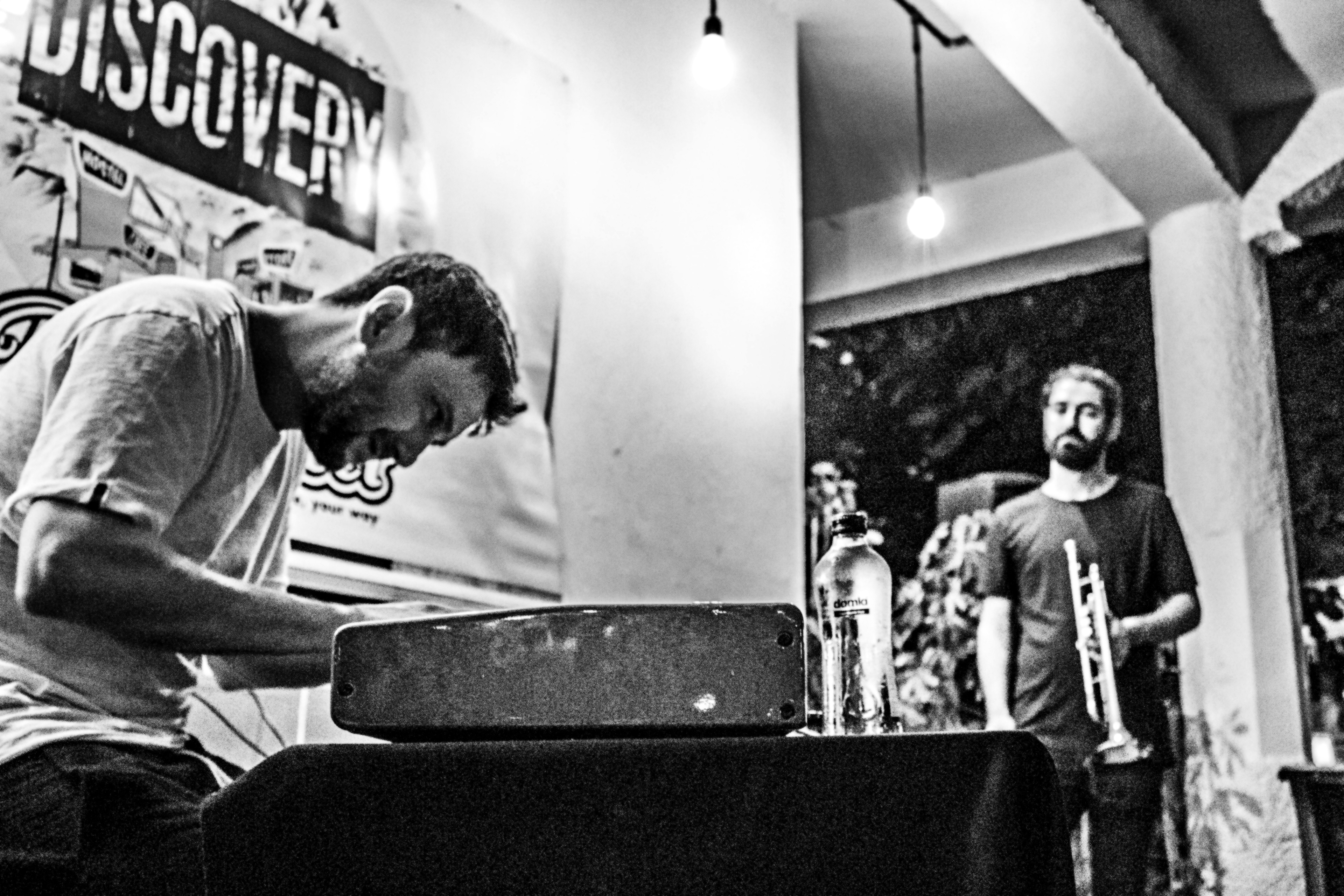 An unexpected encounter between artists, spontaneously giving place to an experiment around improvisation by mixing Jazz, drawing, photography, and words.
